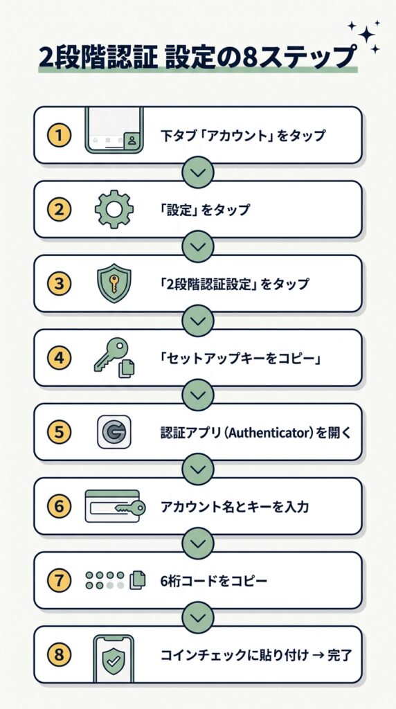 - ステップ⑤:2段階認証【必須】の設定(資産を守る最強の盾)