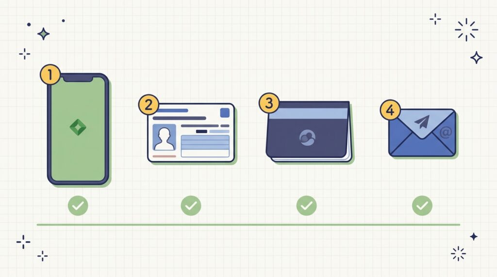 結論:手元に「スマホ・本人確認書類・銀行口座情報・メールアドレス」の4点があればOK。準備5分です。
