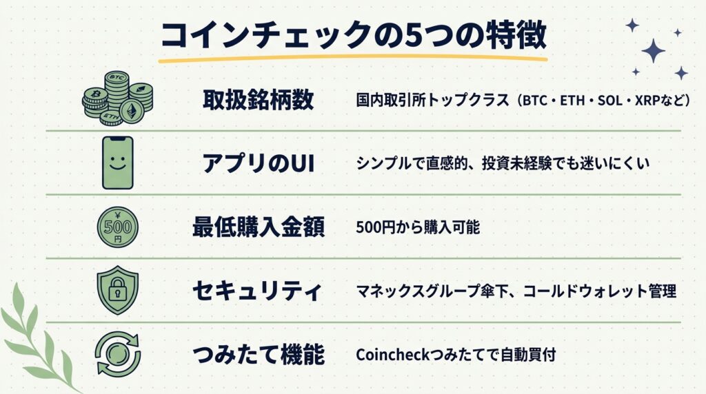 - コインチェックは初心者向けUIと取扱銘柄数で最初の1社として最適