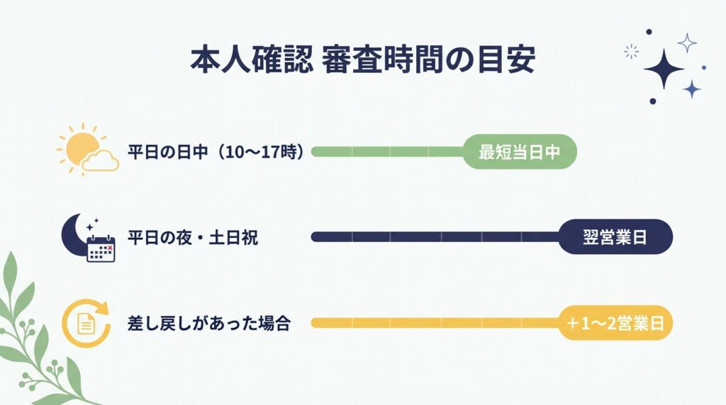- 本人確認の審査にどれくらい時間がかかりますか?